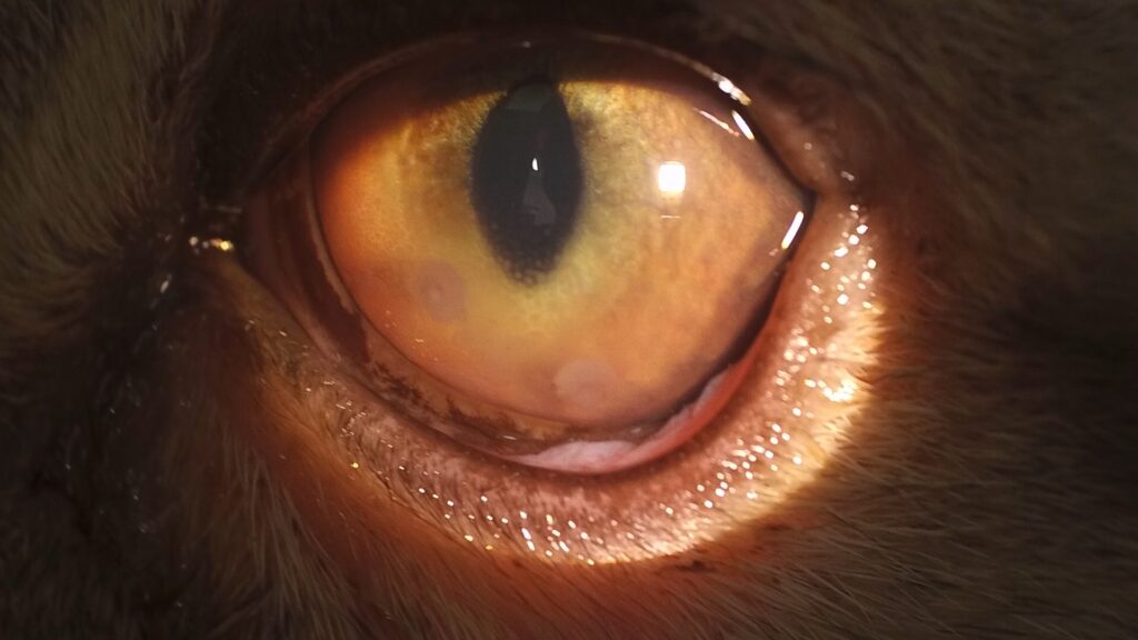 検査の結果、FIPによるぶどう膜炎と診断しました。