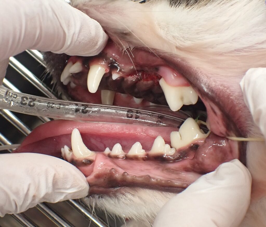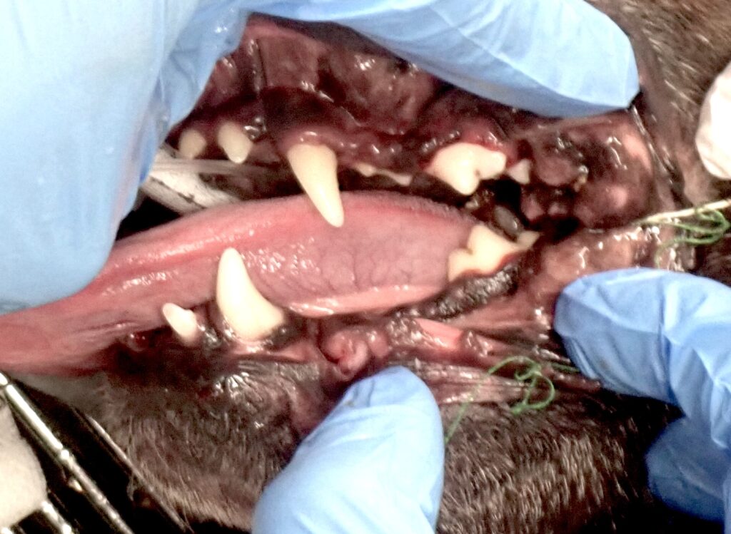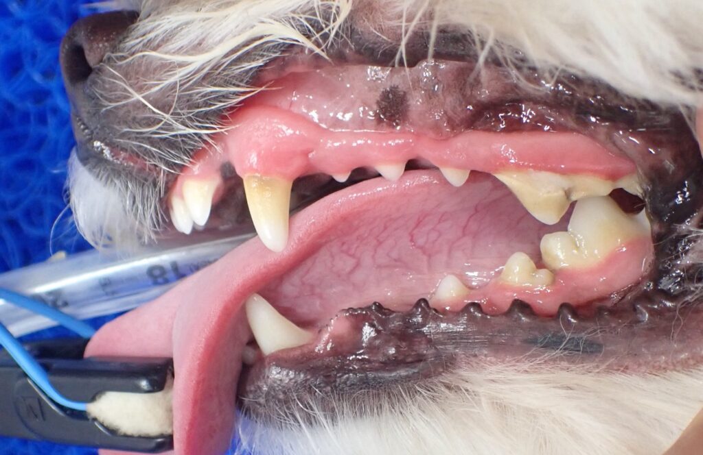 下の写真は、実際に当院でスケーリングを行った子の 「治療前」と「治療後」 の比較です。